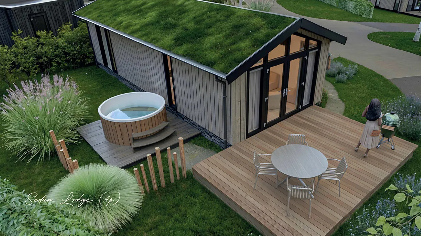 De Sedum Lodge onderscheidt zich door het groene dak, dat prachtig opgaat in het omliggende landschap. Of je nu zoekt naar een eigen plek om tot rust te komen, of een aantrekkelijke investering in een gewilde regio: de Sedum Lodge biedt een fijne balans tussen sfeer, gemak en waarde. Zeer binnenkort verschijnt ons allereerste model met weelderig sedumdak, dat niet alleen duurzaam is, maar ook een oase van rust creëert.