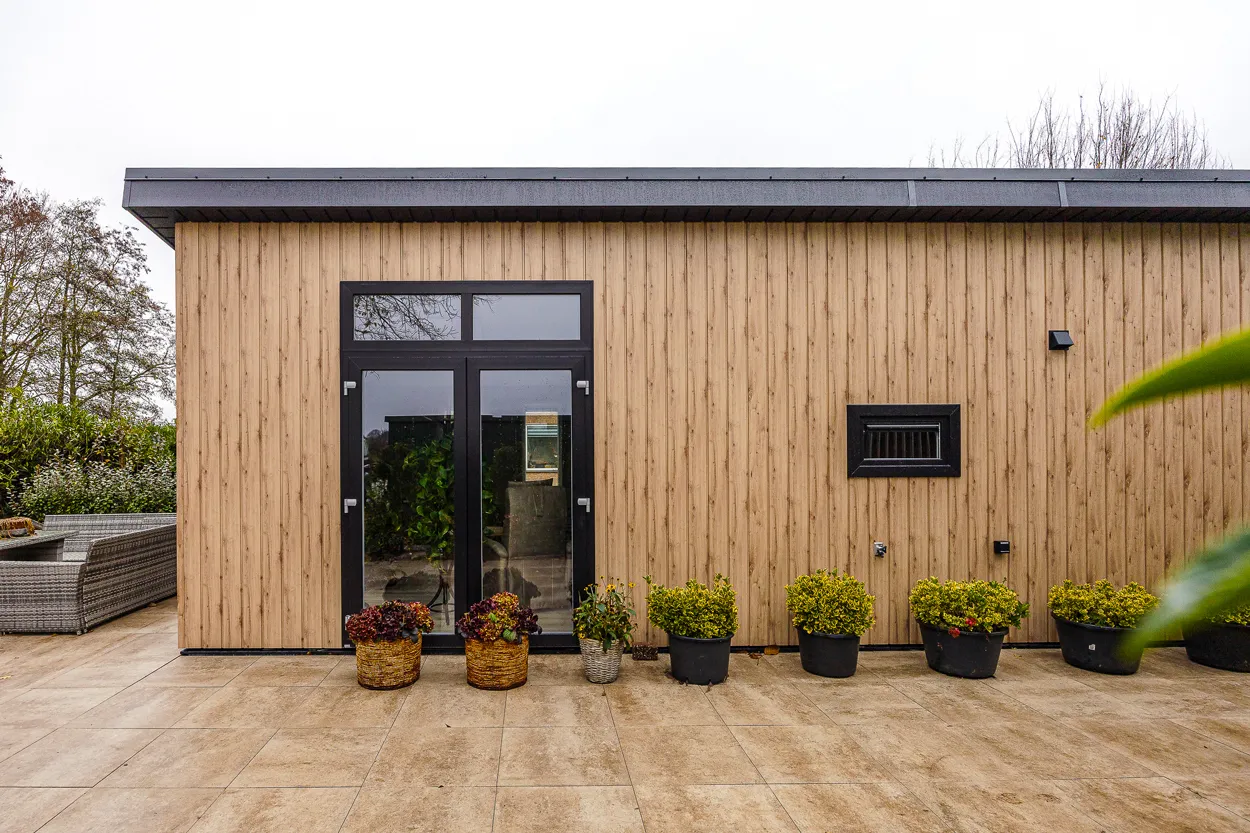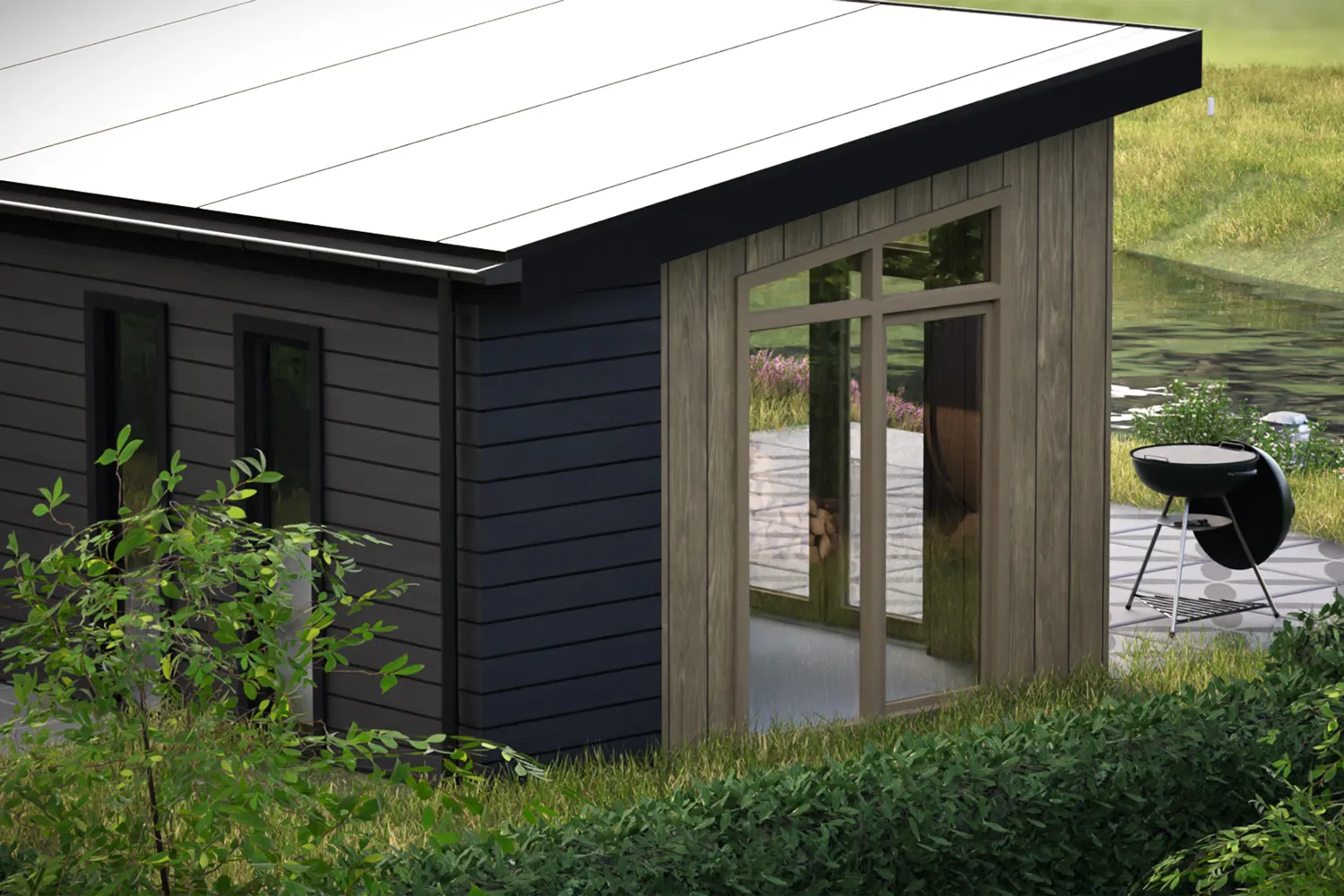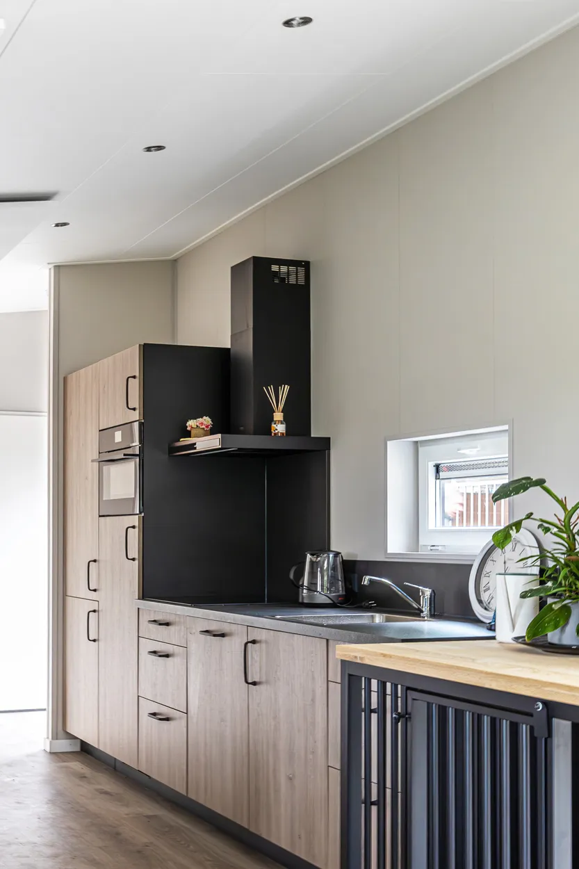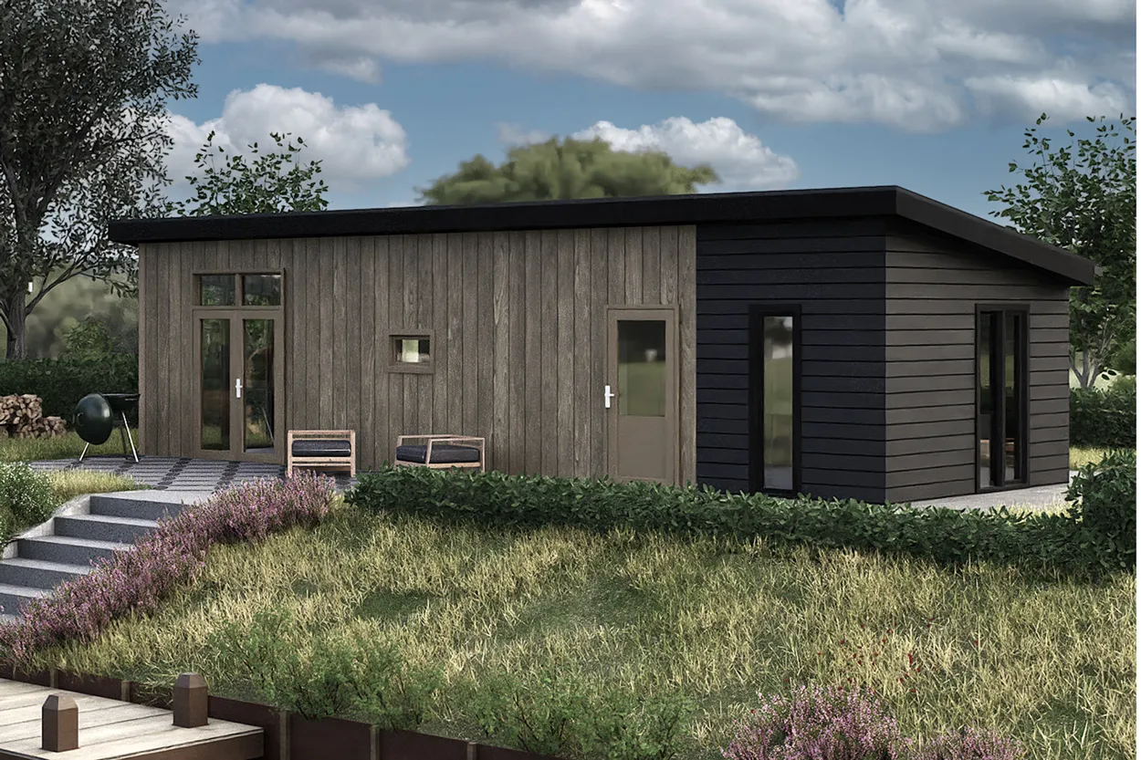 Recreatiechalet Hill Lodge is ons nieuwste model, waar wij efficiëntie en comfort hebben weten te bundelen. Dit model kenmerkt zich door de hoge raampartijen welke tot aan het straatniveau doorlopen. Het lessenaarsdak zorgt in de woonkamer voor een extra ruimtelijk gevoel. Het chalet beschikt over 4 slaapplaatsen. Door het gebruik van 2 moderne kleuren welke worden doorgevoerd in de kozijnen heeft dit chalet een chique uitstraling.