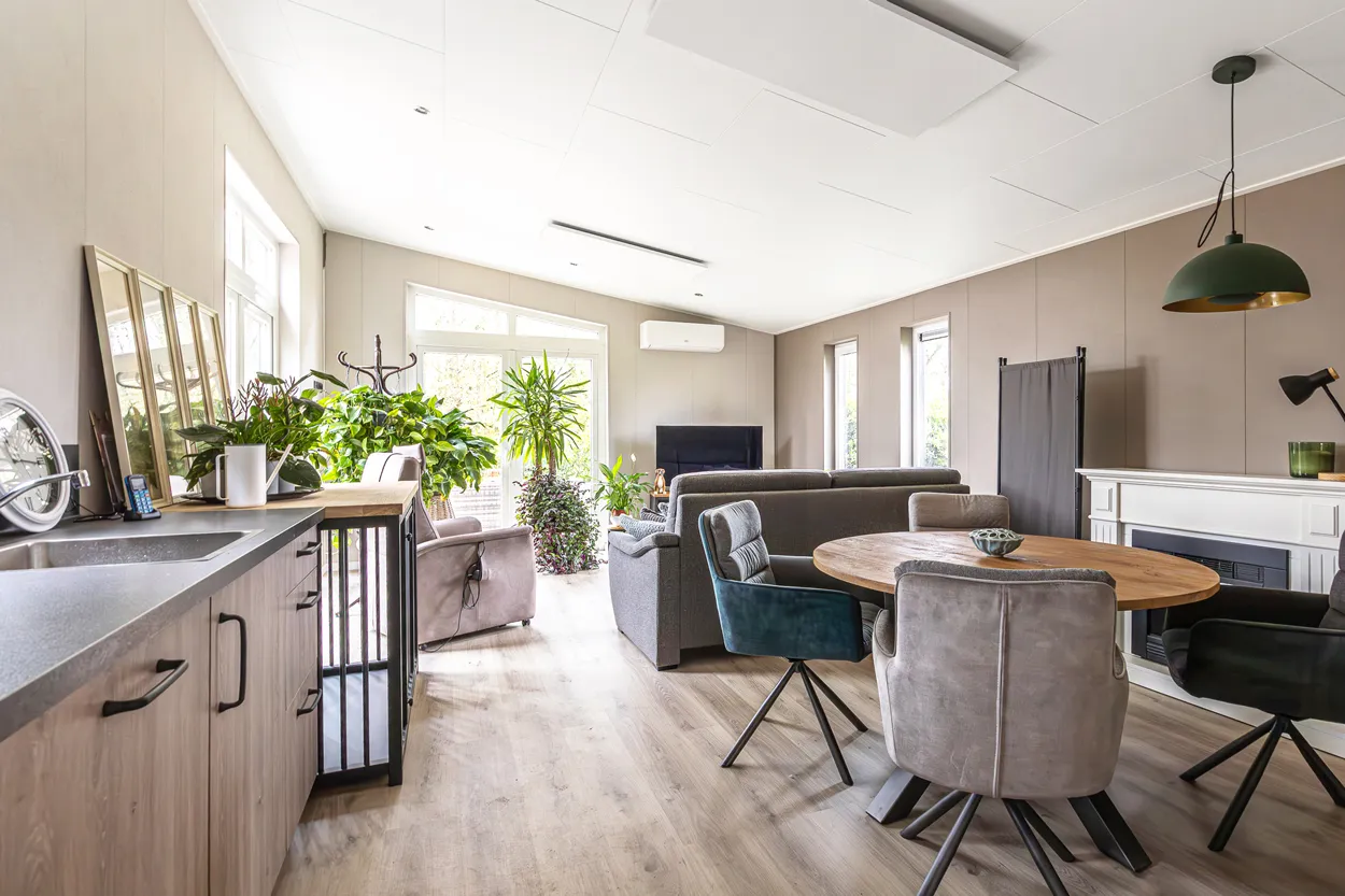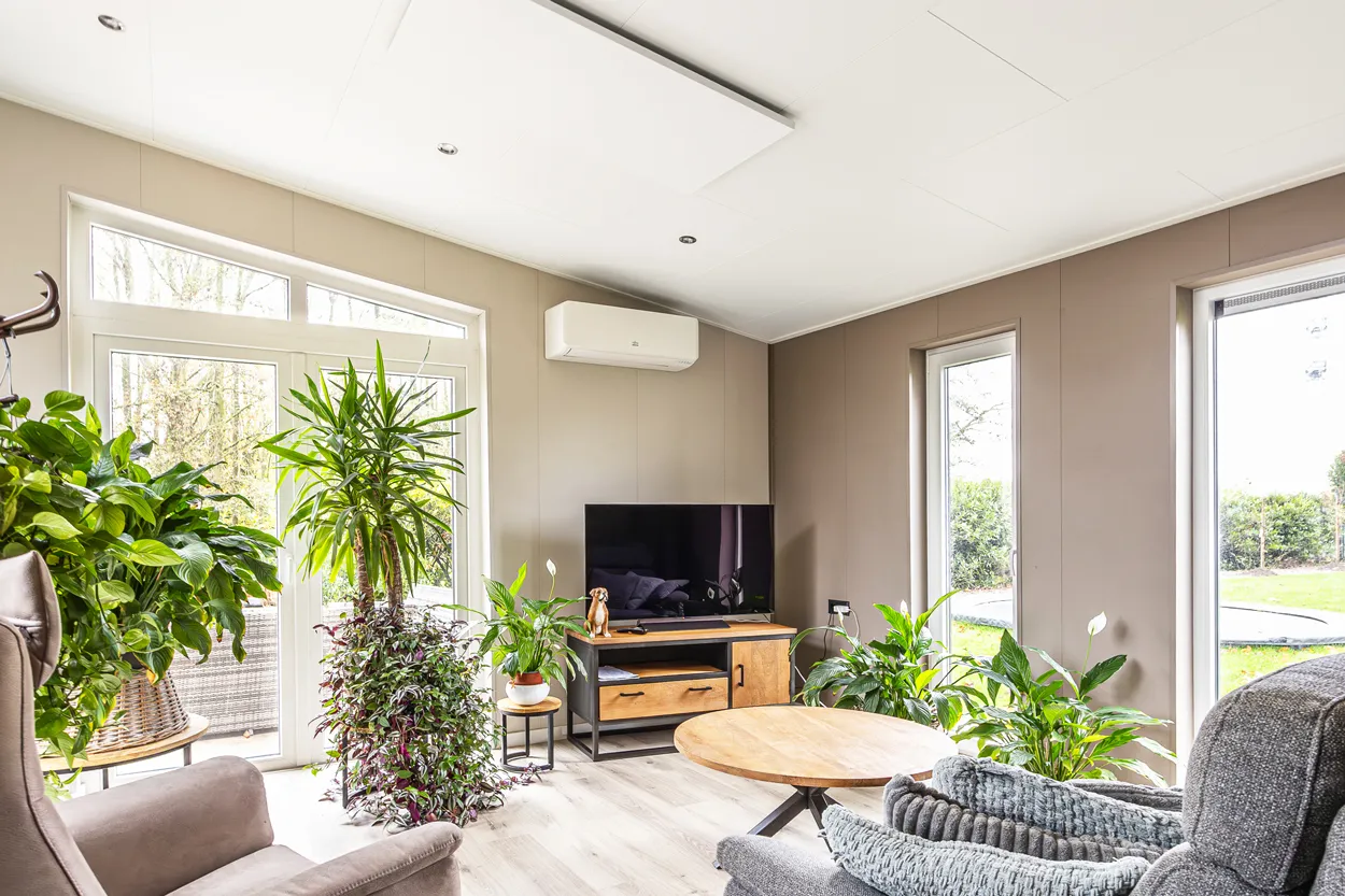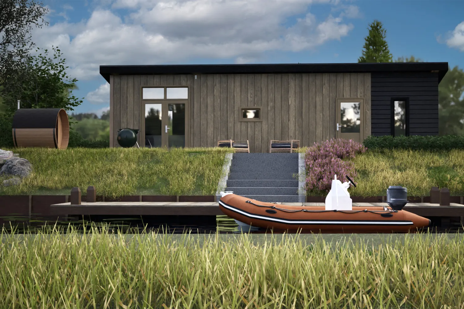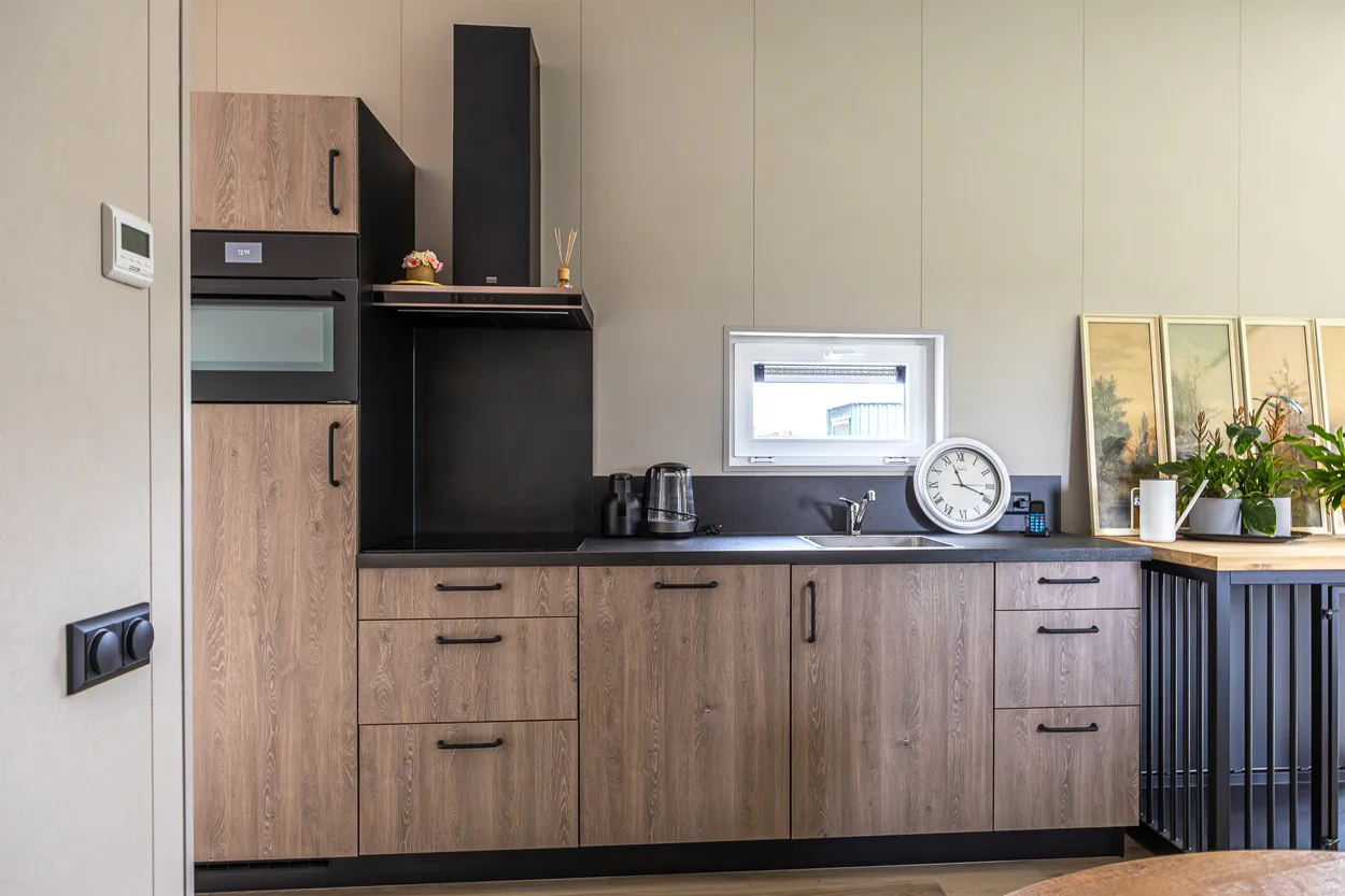 Recreatiechalet Hill Lodge is ons nieuwste model, waar wij efficiëntie en comfort hebben weten te bundelen. Dit model kenmerkt zich door de hoge raampartijen welke tot aan het straatniveau doorlopen. Het lessenaarsdak zorgt in de woonkamer voor een extra ruimtelijk gevoel. Het chalet beschikt over 4 slaapplaatsen. Door het gebruik van 2 moderne kleuren welke worden doorgevoerd in de kozijnen heeft dit chalet een chique uitstraling.