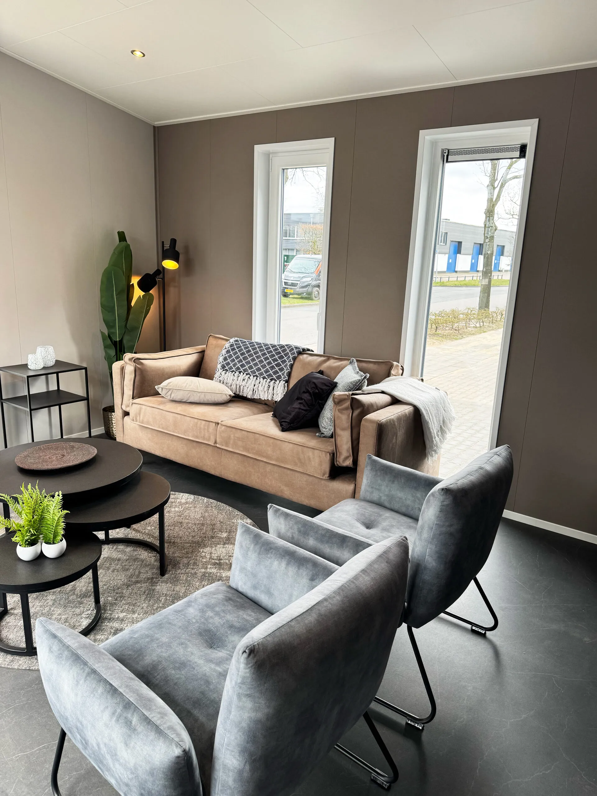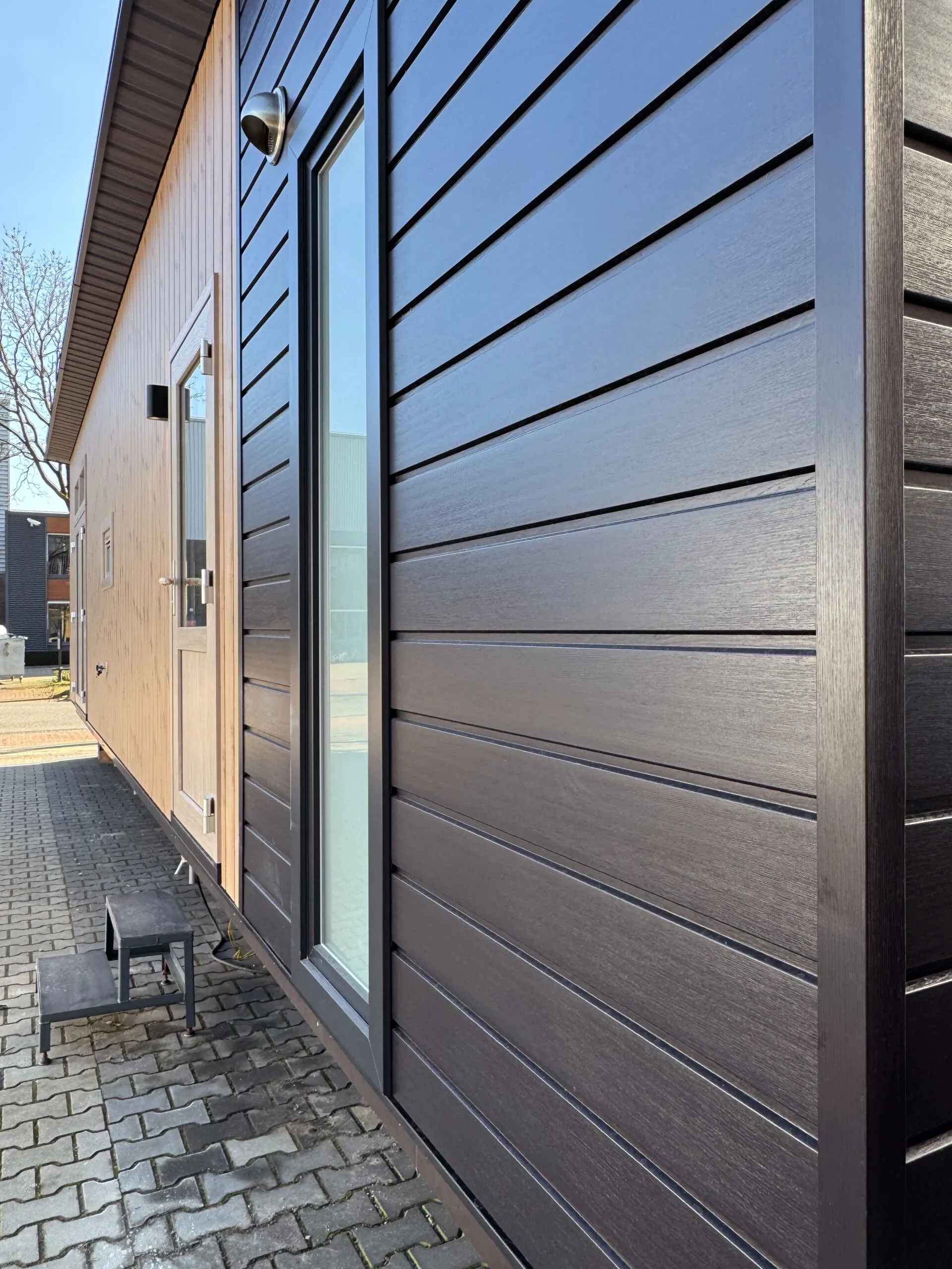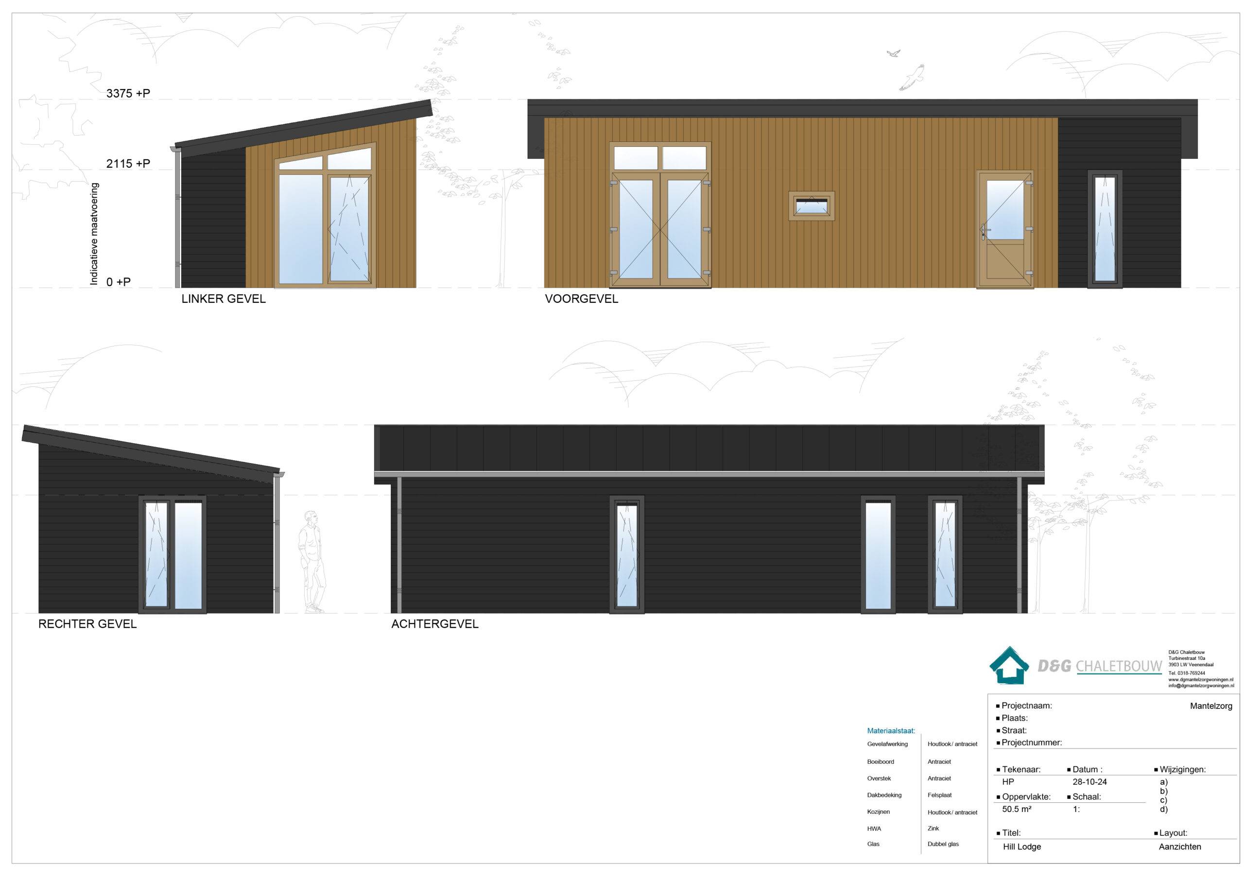 Model Hill Lodge is een chalet met een chique uitstraling, hoge raampartijen en lessenaarsdak. Dit voorraadmodel is leverbaar vanaf december!
