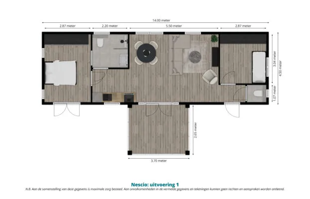 Afmetingen (lxb): 14.00 x 4.50 meter + serre van 3.70 x 2.65 meter Oppervlakte: 63 m² + serre van ca. 10 m² Prijs: €130.300,-*