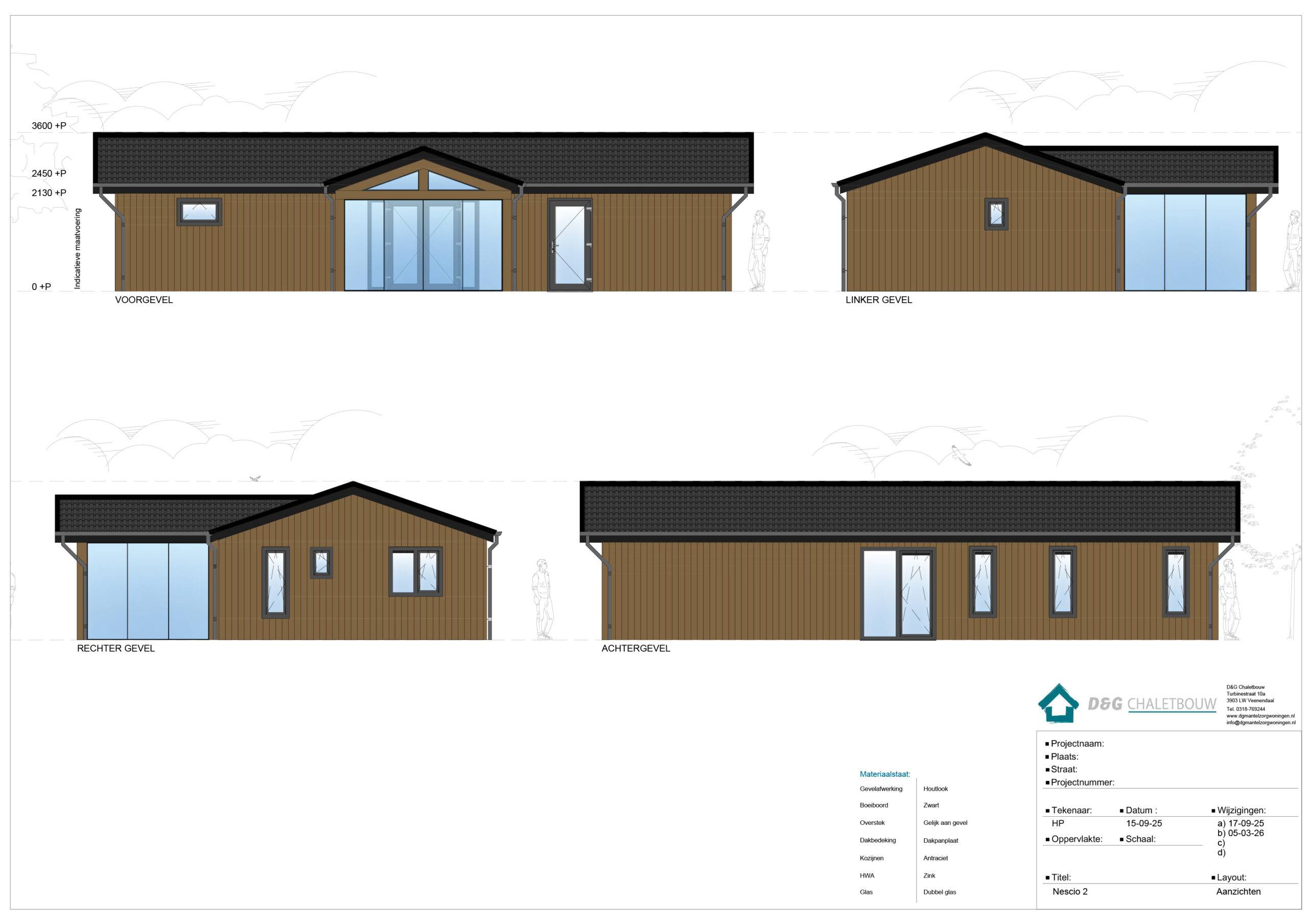Recreatiechalet Nescio is een luxe chalet met zadeldak en veel lichtinval door de grote raampartijen en serre. Binnen ons Nescio assortiment maken we onderscheid tussen verschillende uitvoeringen, alle met hun eigen specificaties.