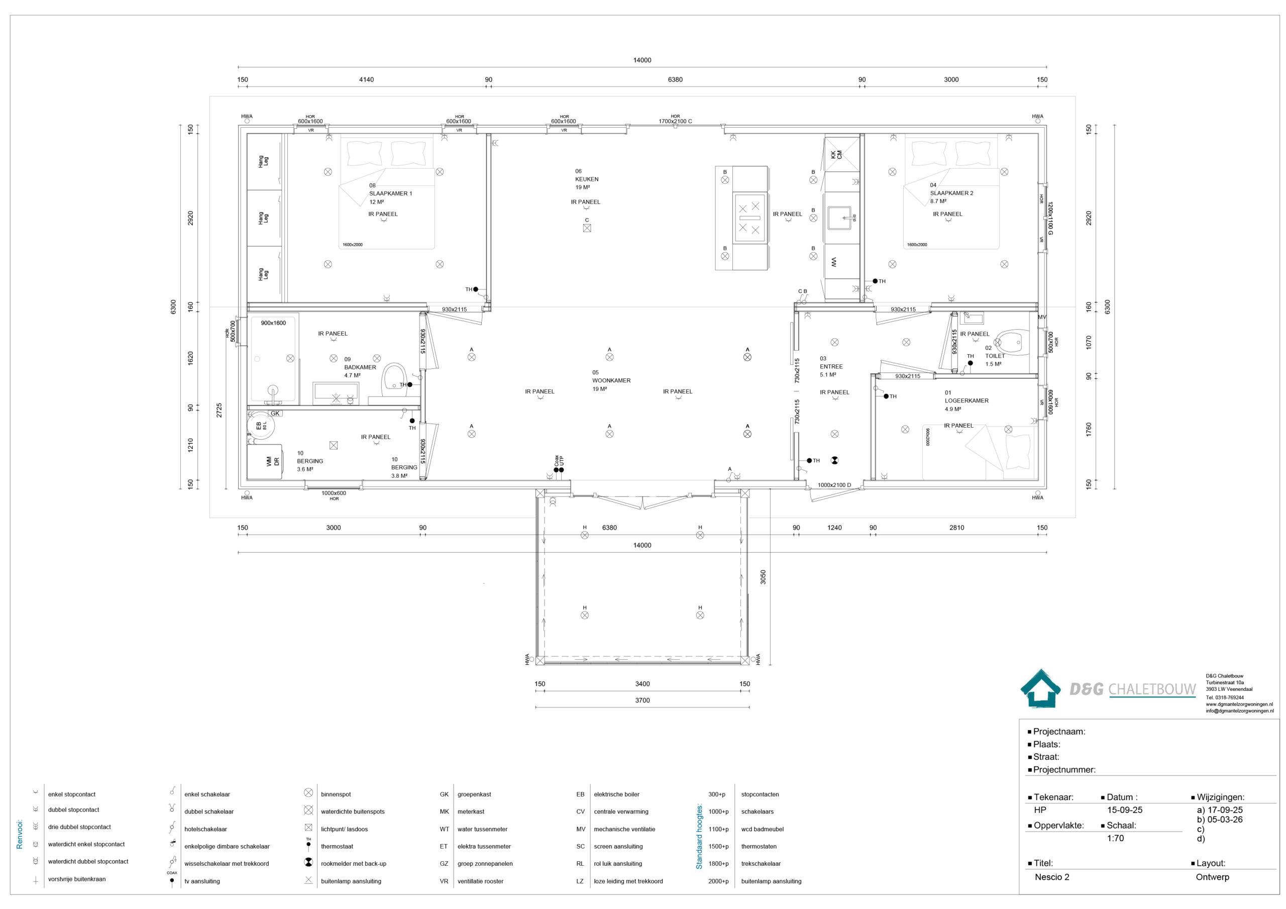 Afmetingen (lxb): 14.00 x 6.30 meter + serre van 3.70 x 3.05 meter